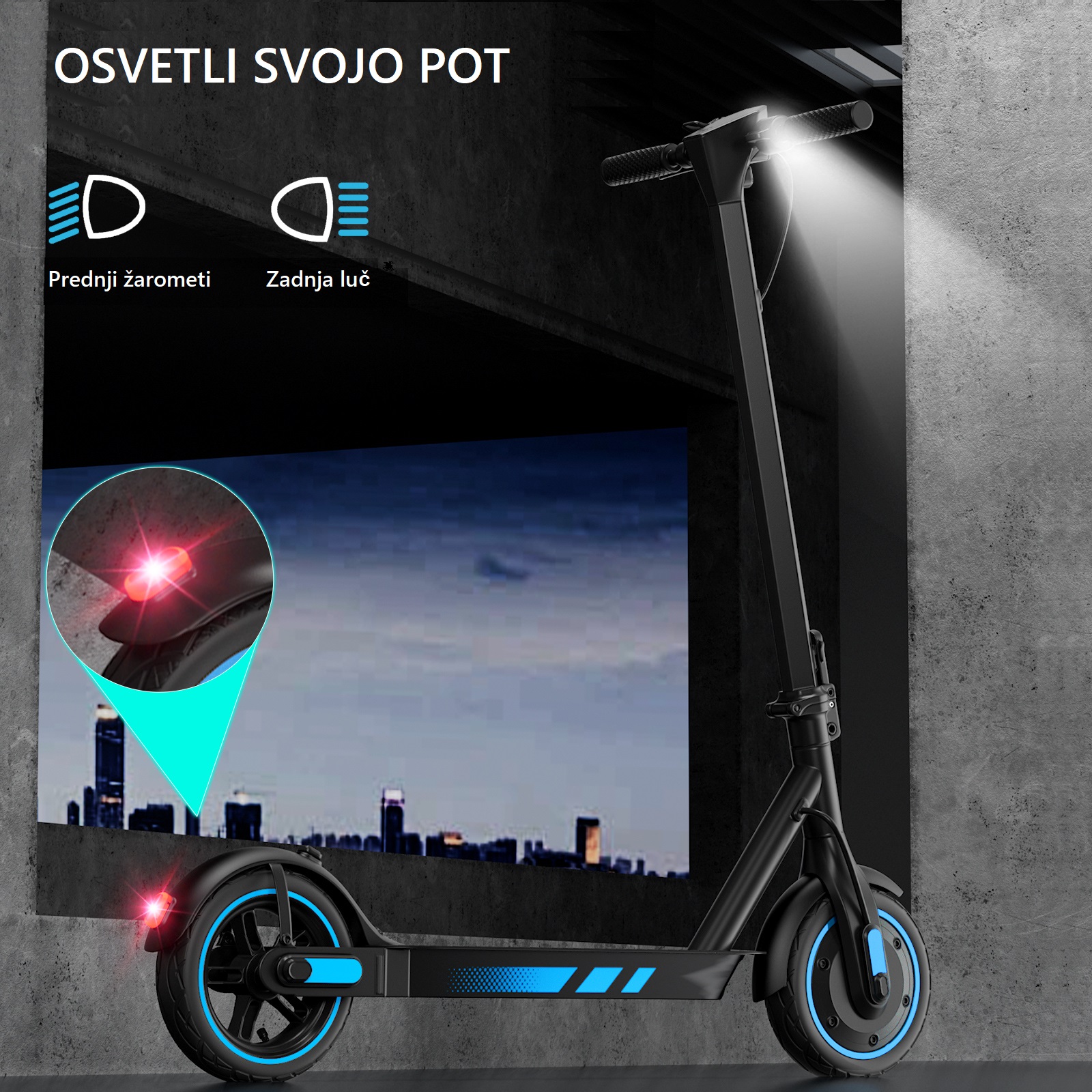 Električni skiro OOTEK V10 je opremljen z LED osvetlitvijo spredaj in zadaj, kar omogoča varno vožnjo ponoči in v slabih vremenskih razmerah, saj zagotavlja optimalno vidljivost.
