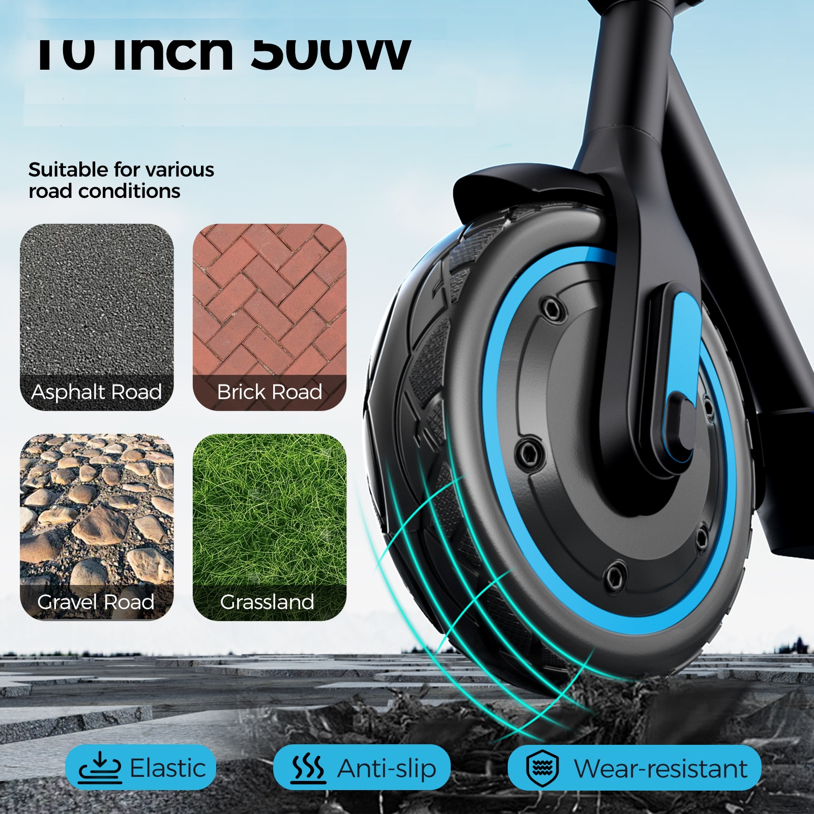 OOTEK V10 se ponaša z 10 palčnimi vakumskimi pnevmatikam, ki so primerne tako za ceste, kot tudi za manj izprosen teren. Pnevmatike združujejo odličen oprijem in prilagodljivost, kar omogoča brezskrbno vožnjo po asfaltu, makadamu in lažejmu terenu.