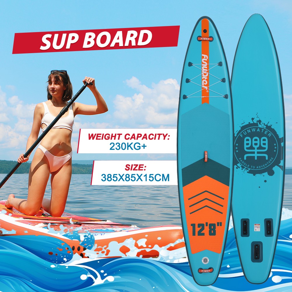 SUP deska Funwater Sigma Blue – gre za Mega SUP dolžine 385 cm, ki v ospredje postavlja hitrost plovbe, okretnost in odlične plovne lastnosti. Ponuja vam po dve vesli in varnostni vrvici v paketu, za aktivno supanje tudi do dveh oseb hkrati. Zaradi svoje plovnosti in velike nosilnosti je primerna za več užitkarjev hkrati.